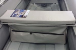 Bankje met kussen en handige opbergtas eronder voor diegenen die lang aan boord zitten