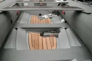 Teak op de vloer, voor die extra luxe uitstraling (boot wordt iets zwaarder)
