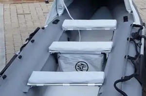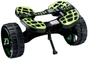 C-Tug wielenset, na het opblazen van de SpearFish en voordat u de motor op de spiegel monteert is het handig om deze wielen onder de boot te zetten. Ondanks dat de boten niet zwaar te tillen zijn scheelt dit wel gezeul met het geheel. Wordt met een spanbandje om de gehele boot heen vastgemaakt. Kunnen klein gemaakt worden.